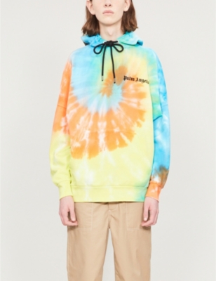 Palm Angels Logo Print Tie Dye Cotton Jersey Hoody Selfridges Com