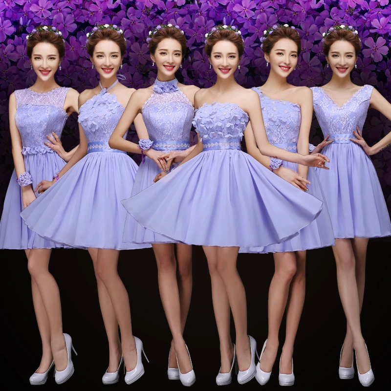 Spring Summer Girl Vestidos Chiffon Knee Length Light Purple Bridesmaid Dresses Pink Blue Red Wedding Party Feestjurken Dames Bridesmaid Dresses Bridesmaid Dresses Pinkknee Length Bridesmaid Dresses Aliexpress