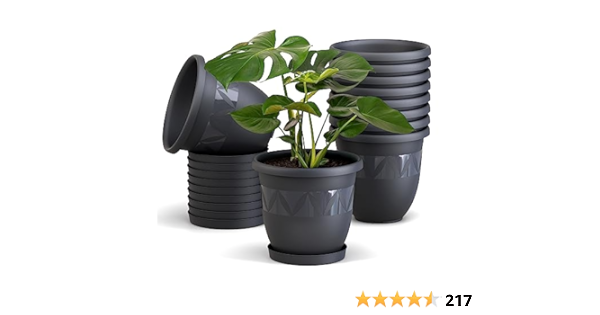 Flower Pot Set Of 10 18 Cm Diameter White Round Plant Pot With Plastic Saucer Weather Resistant Planter Large Plant Pot Amazon De Garden